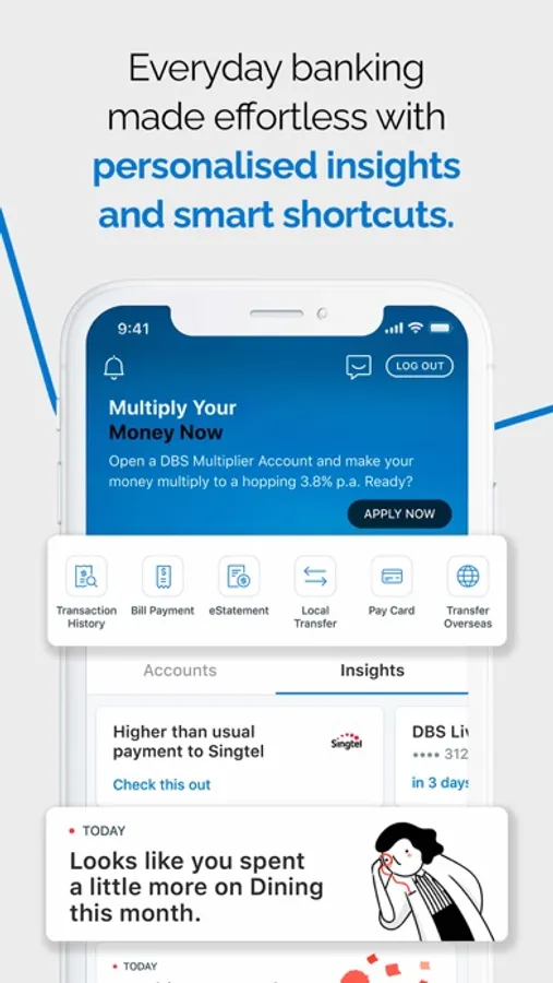 - Get a financial overview with personalised insights to help achieve your financial goals on our newly designed dashboard