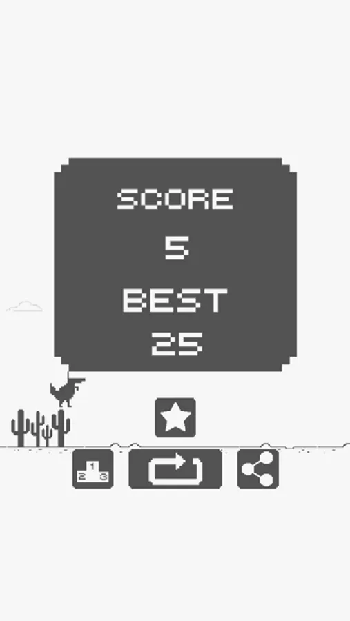 An 8-bit game comes for the people who love old-school styled graphics, with a dinosaur at an infinite desert. Your goal is to avoid cacti. Each time you jump onto a cactus, you get one point. Claim that you are the best at this game and show your skills to your friends by doing the highest score!