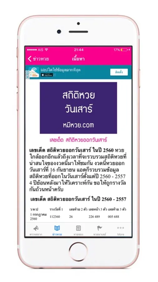 4. แอพจะแสดงผลการ ตรวจสลากกินแบ่ง