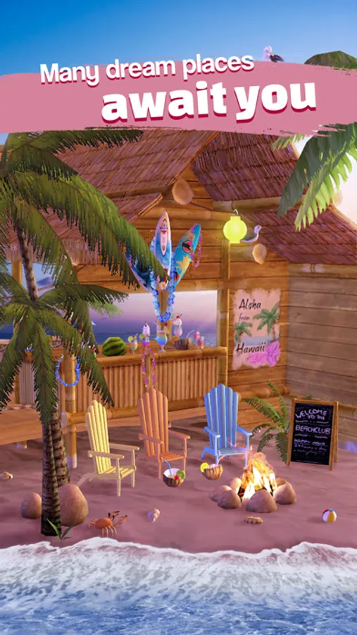 • Invite other 3D avatars into your personal virtual world for a house party, beach party or a romantic dinner or date.