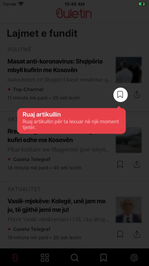 Tashmë, ditët kur duhet të harxhonit kohë duke kaluar nga një faqe lajmesh në tjetrën kanë marrë fund. Shijoni artikuj që reflektojnë stilin dhe karakterin e burimit nga vijnë në një format të unifikuar.