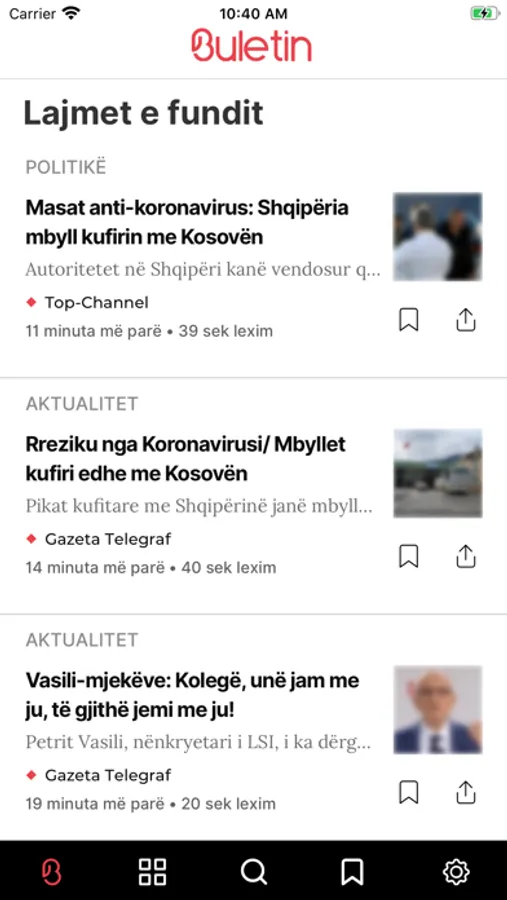 Buletin ofron formatin më të shpejtë dhe të lehtë për t’u njohur me ngjarjet e ditës në shtypin Shqiptar duke ofruar të gjithë botën e lajmeve në Shqip brenda një aplikacioni të vetëm.