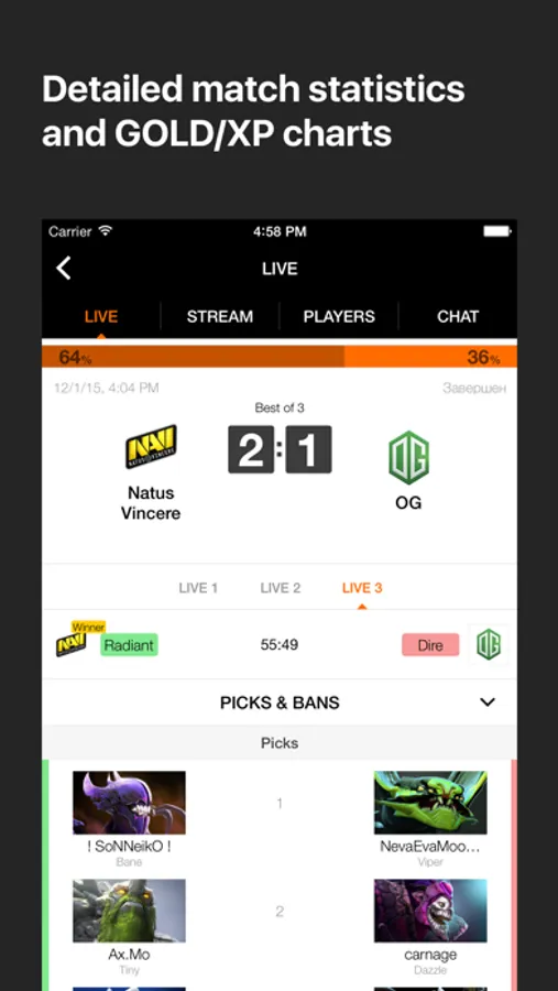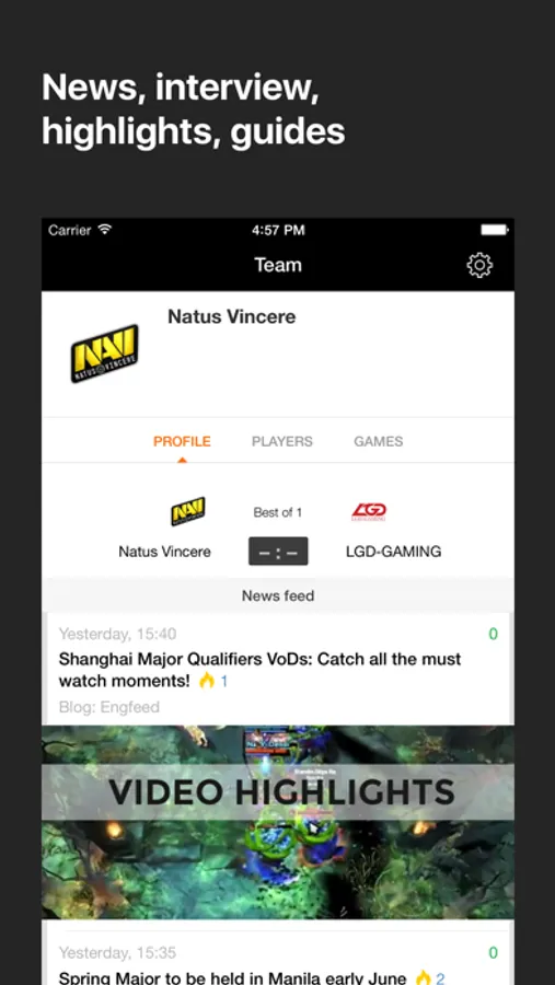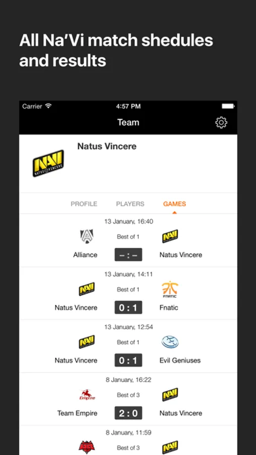Learn everything about your favourite team! It’s the first app about Natus Vincere: news, stats, twitch.tv streams, highlights, match shedules for the true fan.