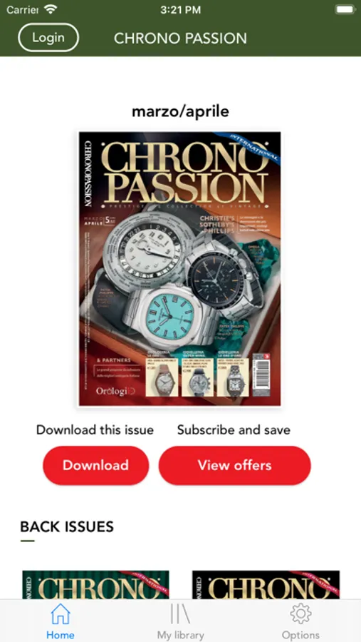 "Pacchetti numeri arretrati"/ Il credito per numeri arretrati può essere acquistato all'interno dell'app. Per usare i crediti acquistati, cliccare semplicemente sul prezzo del numero e scegliere di usare il credito disponibile.