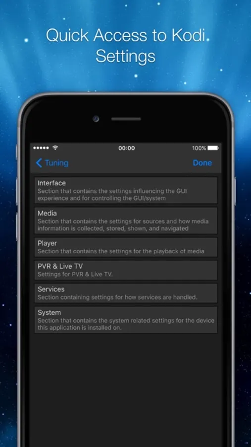 ► Remote settings: quick access to remote settings of the Kodi Media Center