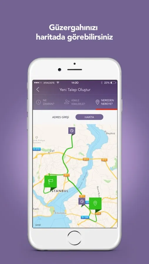 Yolculuğunuz boyunca uğramanız gereken başka uğrak noktalar mı var? O zaman uğrak noktalarınızı kolayca belirleyin, şoförünüz sizi en güvenli şekilde gideceğiniz yerlere ulaştırsın.