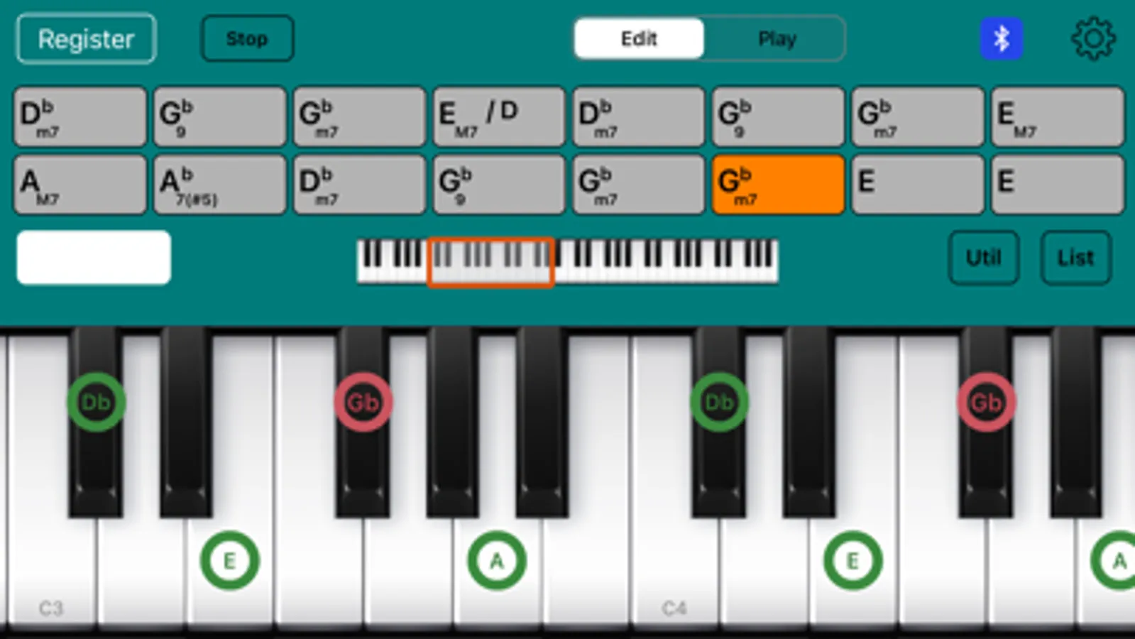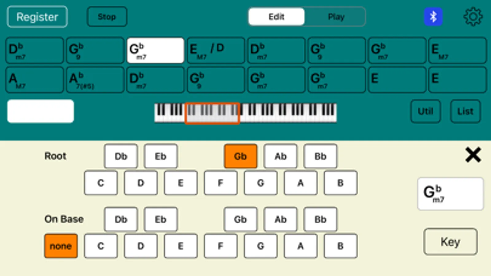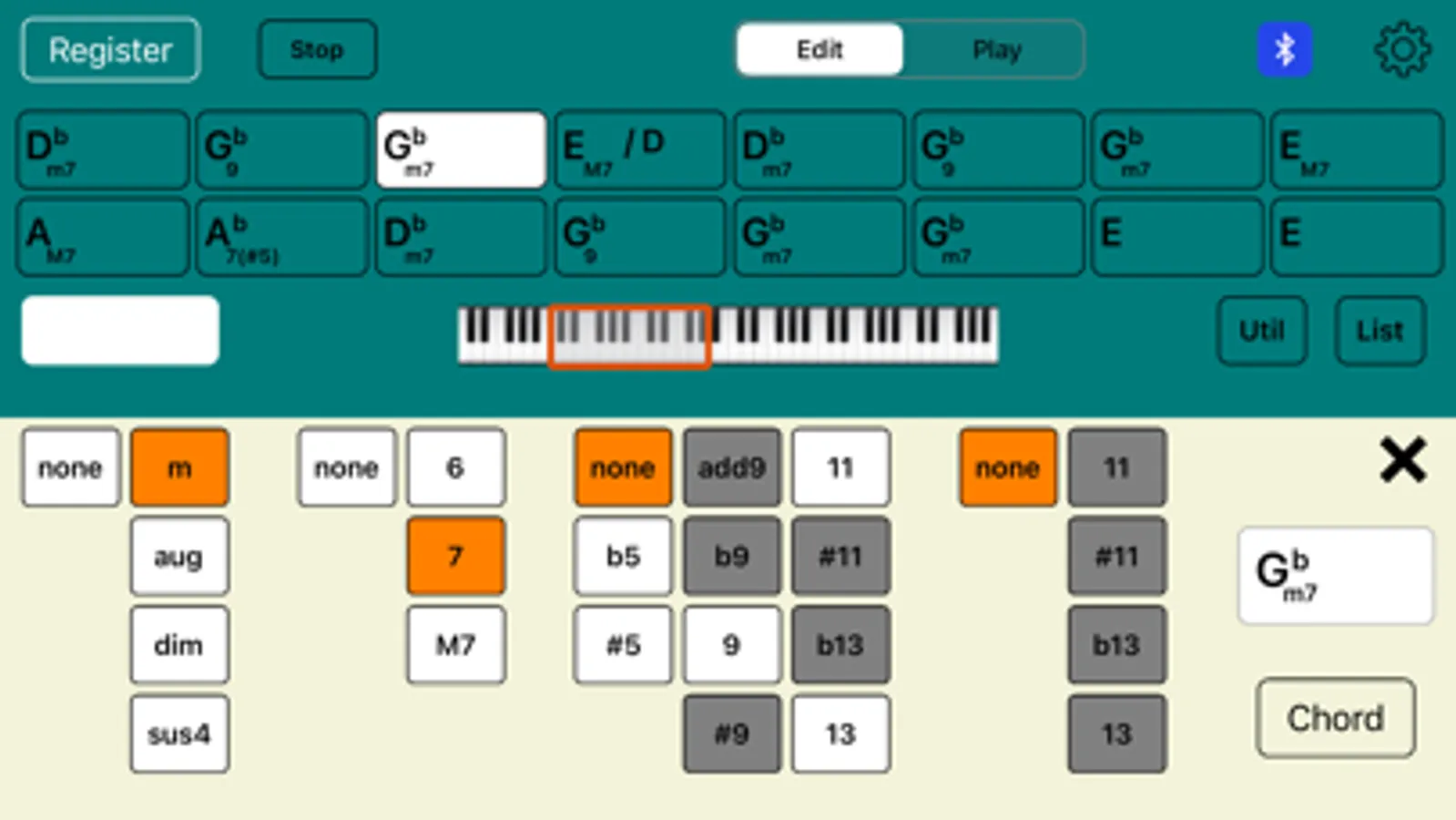 * It is possible to add chord progression. (Select "Add chord progress" from the dialog displayed from [Util] button on [Register] screen.)