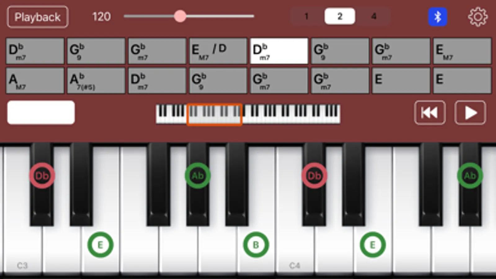 As the main features of this app, it has the function to play chords continuously as sequencer of up to 16 bar.