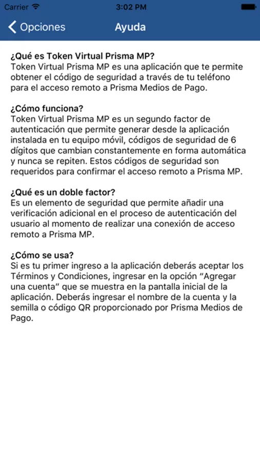 Prisma Medios de Pago Token es un segundo factor de autenticación que permite generar desde la aplicación instalada en un equipo móvil, códigos de seguridad de 6 dígitos que cambian constantemente en forma automática y nunca se repiten. Estos códigos de seguridad son requeridos para confirmar el acceso remoto a Prisma Medios de Pago.