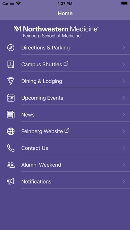 The Northwestern University Feinberg School of Medicine app features campus maps, directions to specific buildings, nearby dining and lodging options, and a directory for connecting with Feinberg departments, centers, offices, and affiliates.