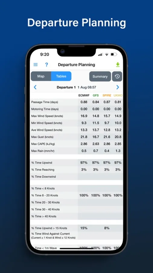 Weather Routing and Departure Planning is calculated in the PredictWind cloud at the highest resolution. The finished route is then sent back to your boat in an incredibly small file size which is ideal for low bandwidth satellite and SSB connections.