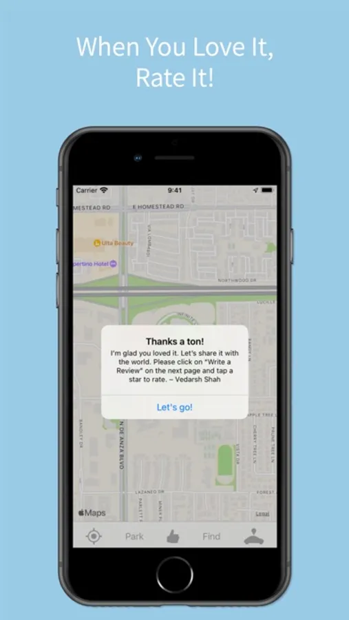 Click Park to let me know where you parked your car. Good thing is that you don’t need data / Wi-Fi connection for park. Should you forget where you parked, Click Find and I will show you the way! I would need data / Wi-Fi connection for very brief time, to figure out the directions!