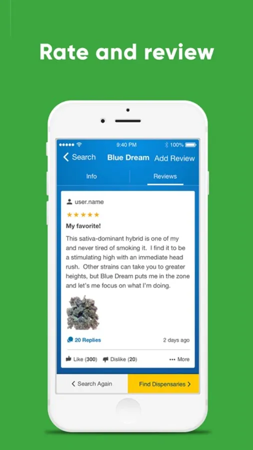 Unlike other cannabis apps, you no longer need to type strain name after strain name. You simply ‘dial-in’ the effects you want to feel, add your taste preferences, and within seconds Cannacopia’s patent-pending technology automatically searches though thousands of possible cannabis strains and product combinations to find the perfect match to help you achieve the effects that you desire. Earn GURU points for rewards every time you search and comment.