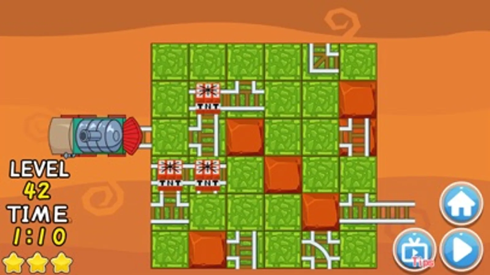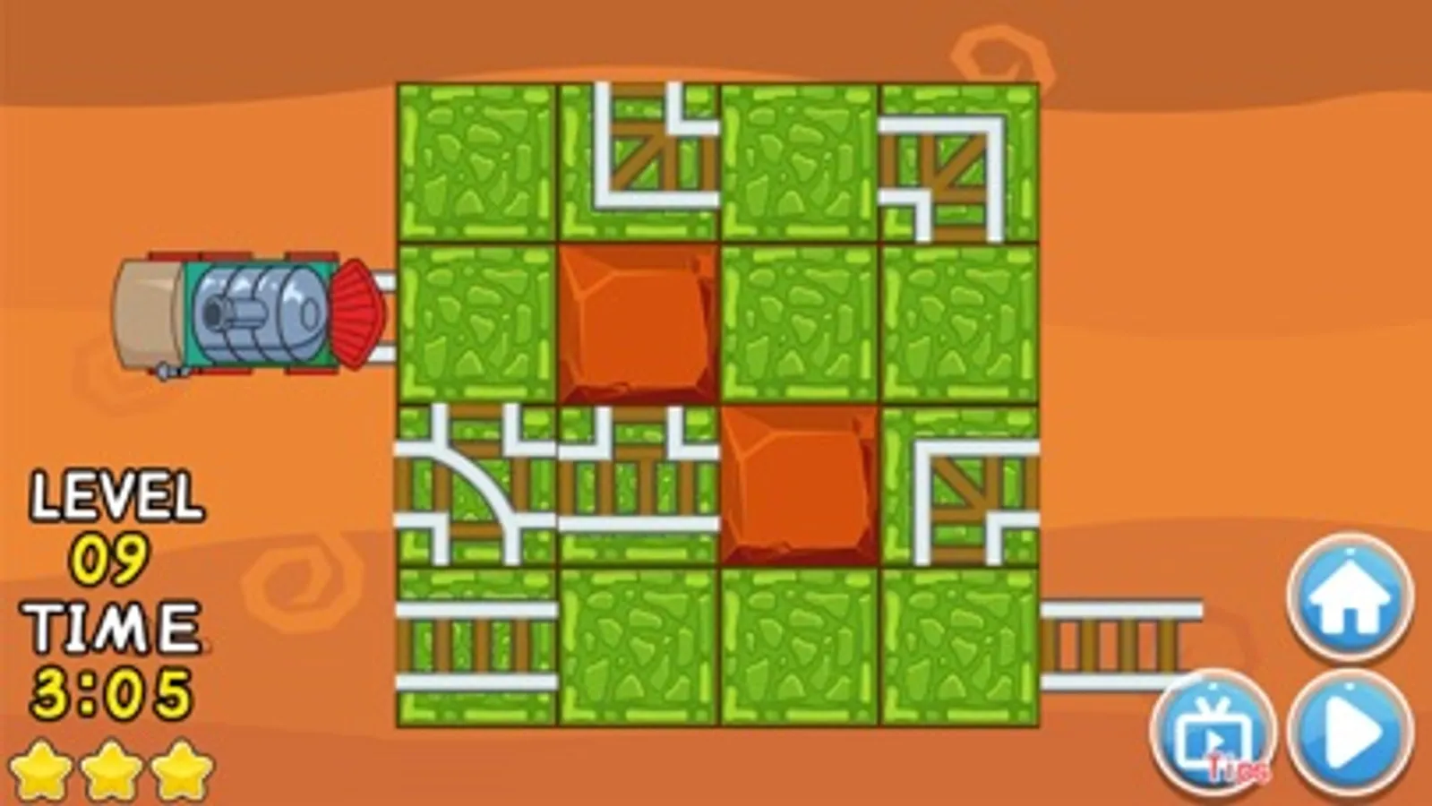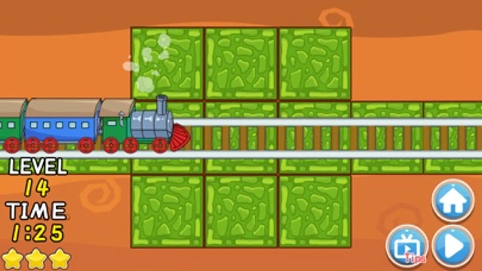 The train railway is damaged. we should build up the railways correctly to allow the train go through. The difficulty will generally increase when you go to higher level. There will be traps and bombs in higher levels. We should avoid reaching it to make sure the train can go through safely.
