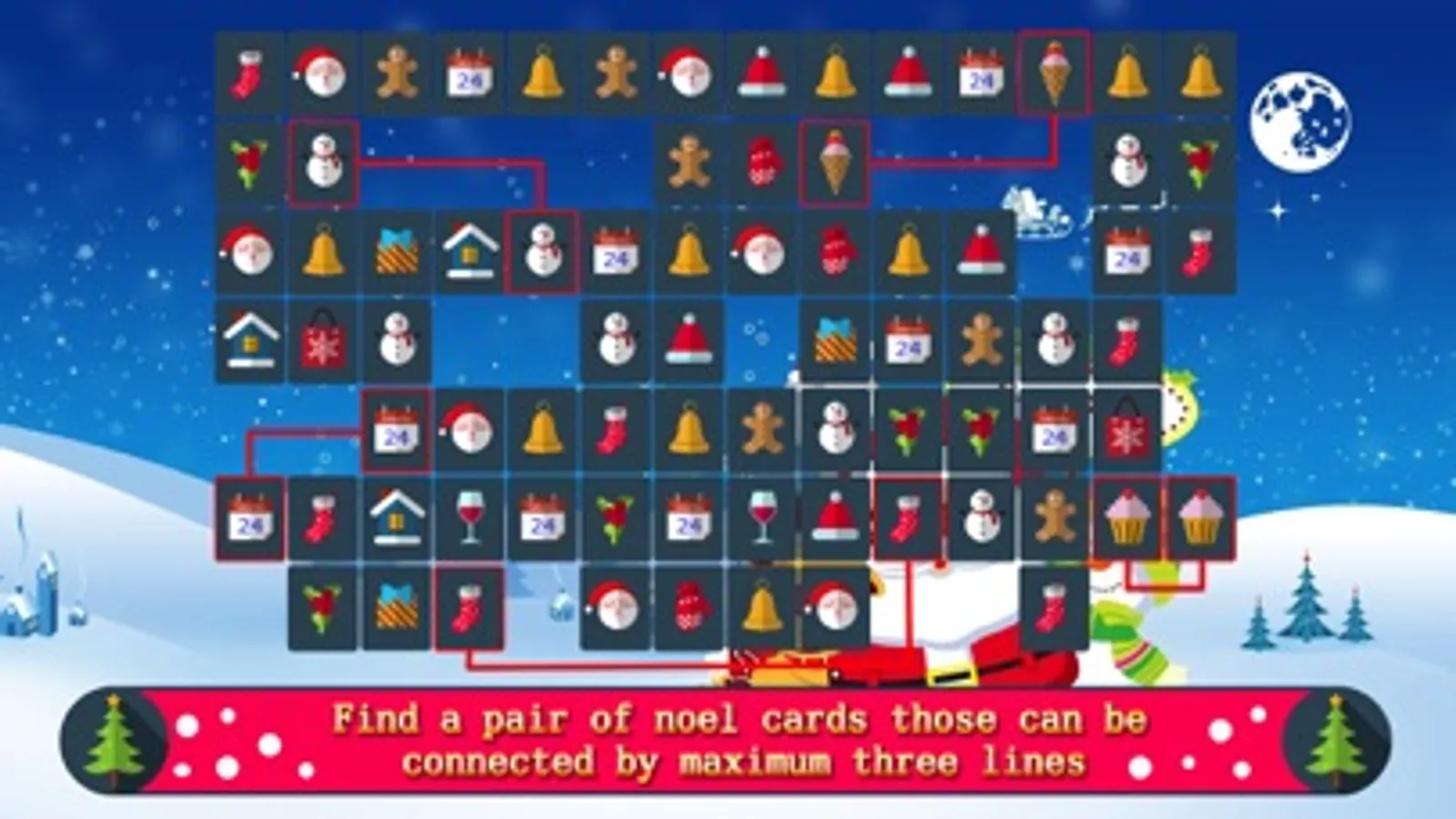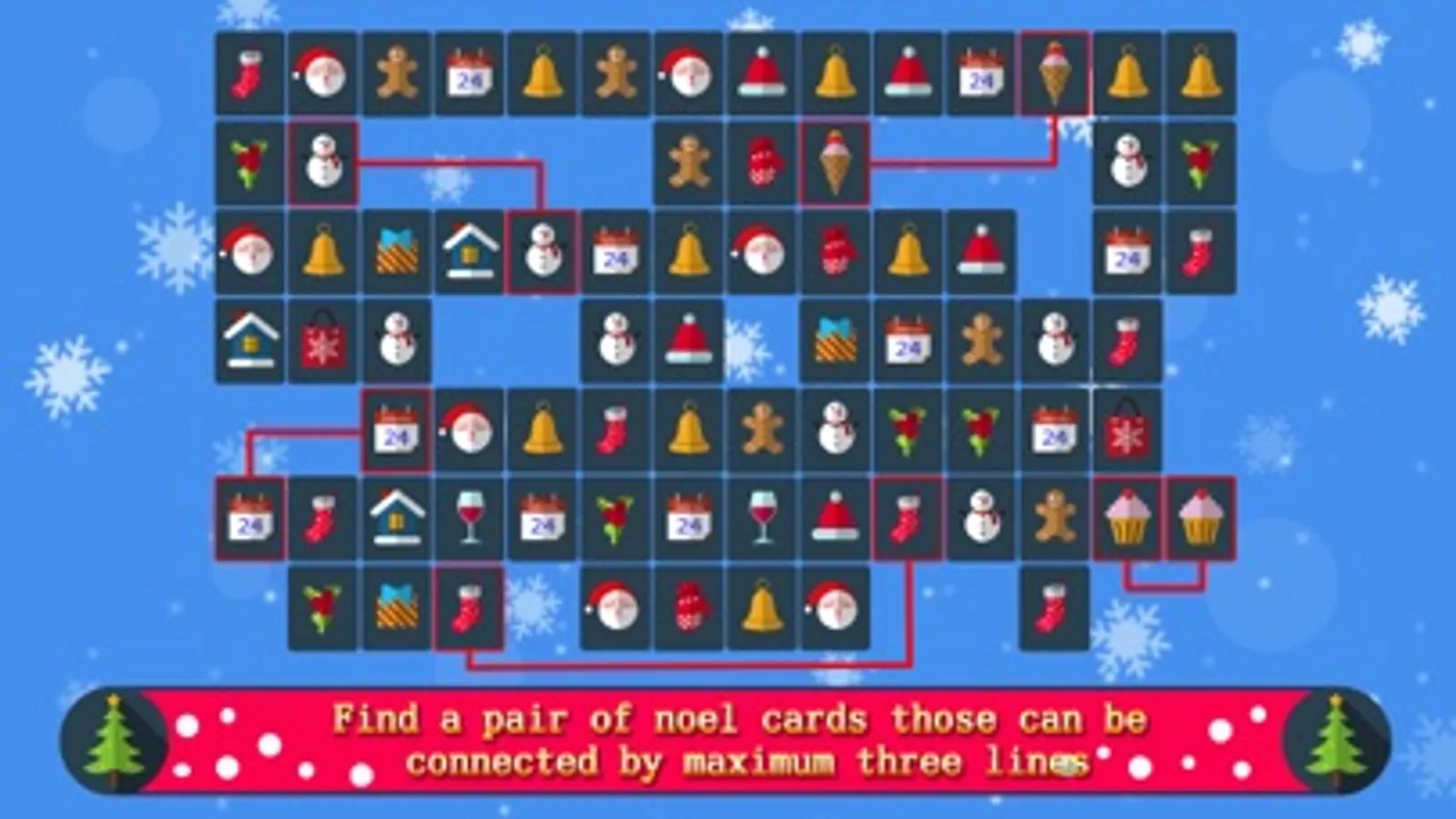 How to play: Find the same noel cards which can be connecting by a line bend no more than 3 times.