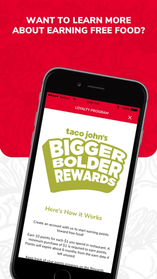 Score free food, order online, enter epic contests and get the latest news with the Taco John's® app: a must have for every home screen. Tap the "Get" button to register and you'll instantly unlock an exclusive offer. New fans of Taco John's® and life-long fanatics alike need this one. It's a no brainer. Download now.