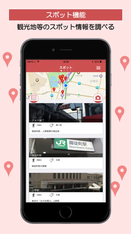 「観光地」を「ゆったり、ぷらっと歩く」をコンセプトにした、観光を "より楽しく""より便利に"するスマホの無料アプリケーションです。