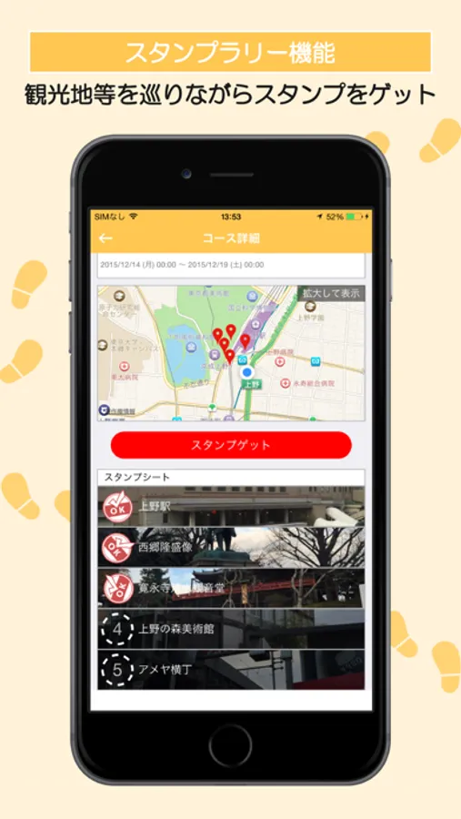 ・チェックポイントの近くまで行って、スタンプを取得してみよう。