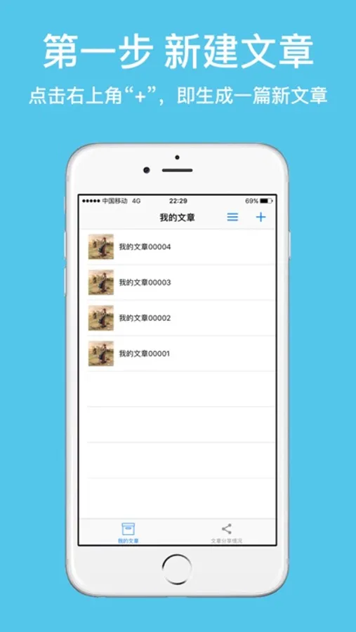 点击右上角“+”号,选择“新建文章”,就生成了一篇新的文章。