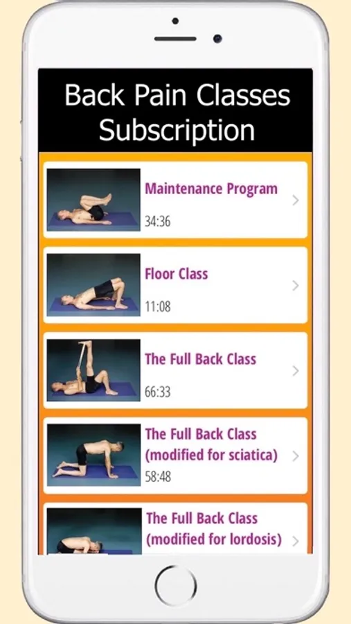 Once you experience the comfort and safety of these practices for your specific back condition, please consider the 3-month subscription package of 7 classes within the app which includes "The Full Back Class" of 28 practices for deeper, more sustained relief. The package contains:
