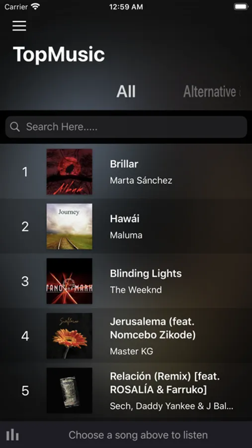 - Listen to a preview of all available songs
