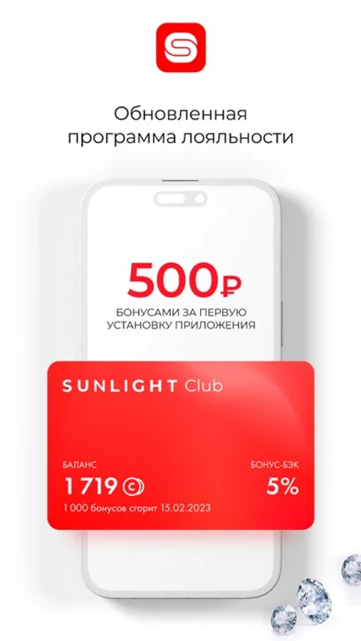 Если вы не знаете, что подарить на день рождения, юбилей, 23 февраля или 8 марта, годовщину свадьбы и другие торжества - в ювелирных магазинах SUNLIGHT вы найдете идеальные ювелирные изделия и украшения из драгоценных металлов: золото 585 пробы, серебро 925 пробы, эксклюзивные украшения с бриллиантами Якутии, стильное золото Италии, помолвочные и обручальные кольца для особых случаев и подарки на любой вкус для ваших близких. И не забудьте про регулярные акции, благодаря которым ваш шопинг будет проходить под лозунгом "лучшая цена"! Бесплатное приложение Санлайт предоставляет вам следующие возможности: