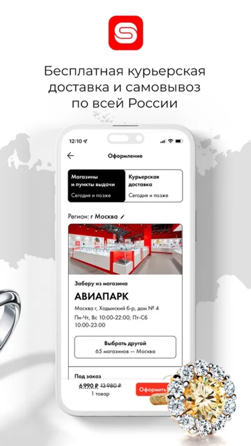 - бронирование украшений и часов для последующей примерки и покупки в ювелирных магазинах SUNLIGHT