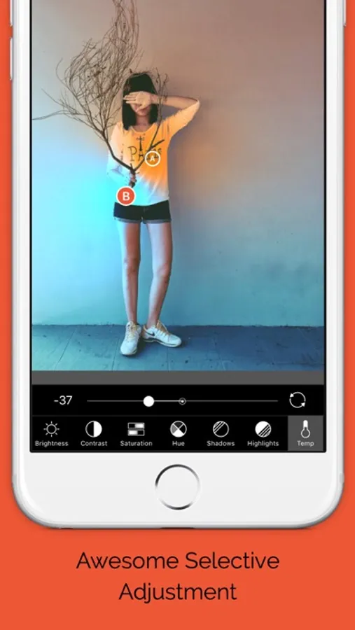 * Selectively adjust brightness, contrast, saturation, hue, shadows, highlights and temp effects