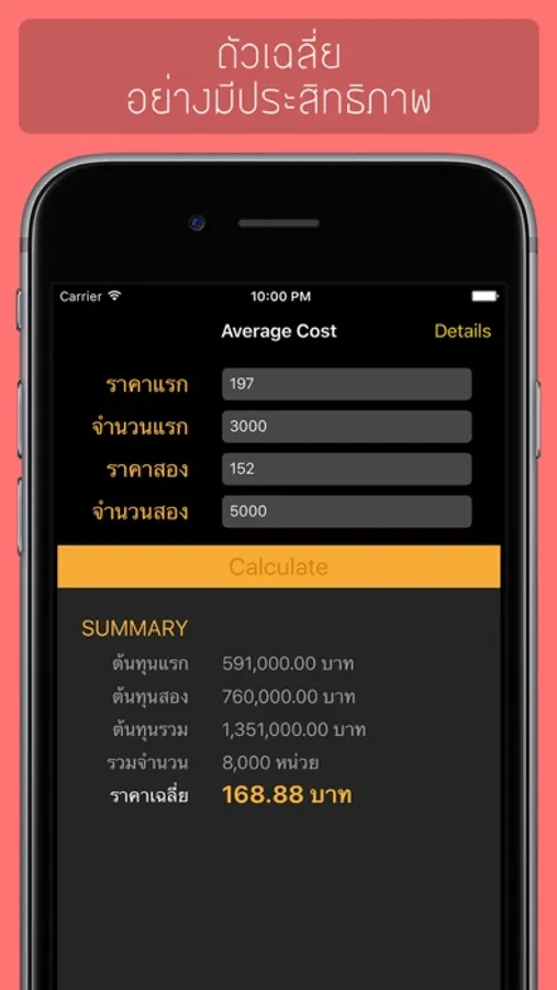 3. Average Cost - ใช้เพื่อคำนวณเกี่ยวกับการถัวเฉลี่ย เช่น การซื้อเฉลี่ยหรือขายเฉลี่ยในขาขึ้นและขาลง