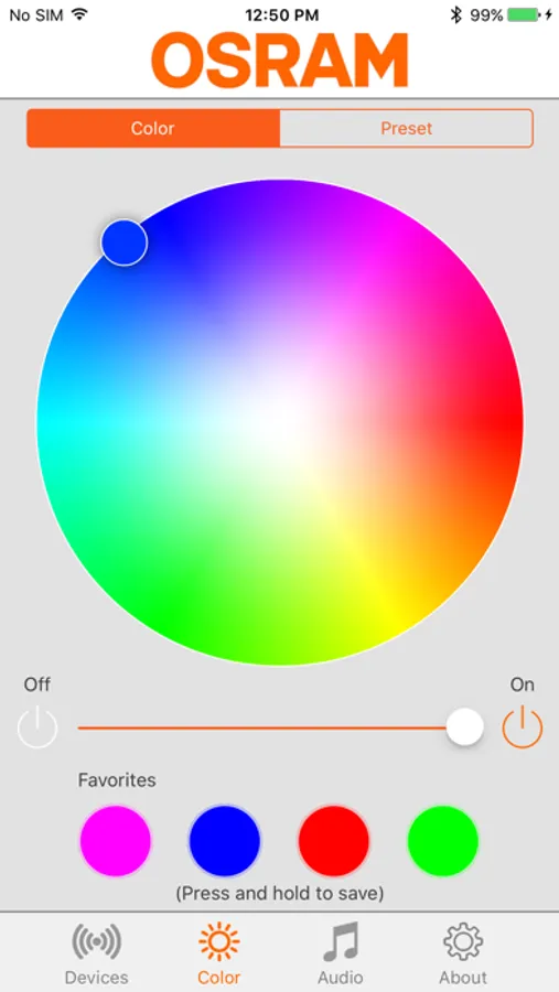 The LEDambient® CONNECT App from OSRAM allows a control of OSRAM LEDambient CONNECT car lighting products. The communication works very easy via Bluetooth LED controller. The app allows for quick access to color settings of the LEDambient CONNECT PULSE, HYBRID or TUNING LIGHTS devices. Thus, you can adjust the interior and exterior lighting of your vehicle quickly and individually.