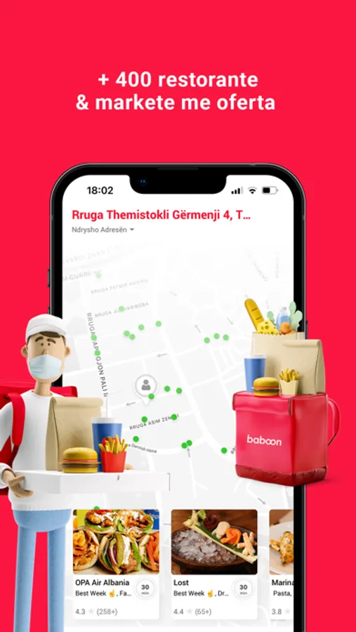 Baboon ofron Shërbim Delivery, Kudo, Kurdo 24/7.