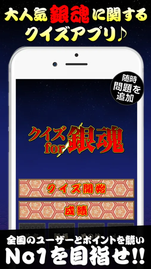 "Quiz for Gintama (銀魂)" corresponds to the game room, you can compete for users and points across the country.