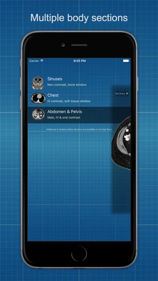 NOTE: This is the BASIC version of X-Anatomy, which includes three body sections: CT-Sinuses, CT-Chest, and CT-Abodmen/Pelvis (male). If you will need a wider range of body sections now or in the future, we recommend you consider the X-Anatomy PRO version. If you would like to try the X-Anatomy interface first, consider the X-Anatomy Free version.