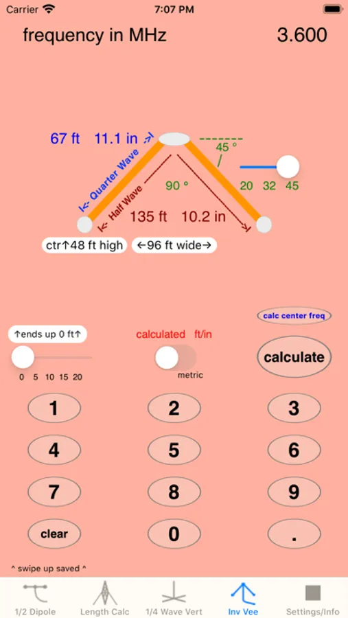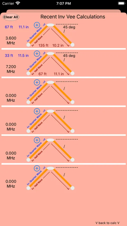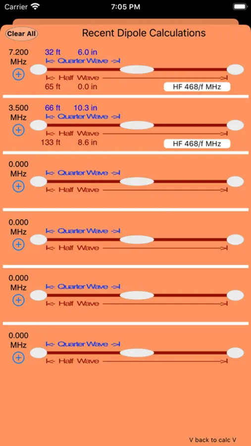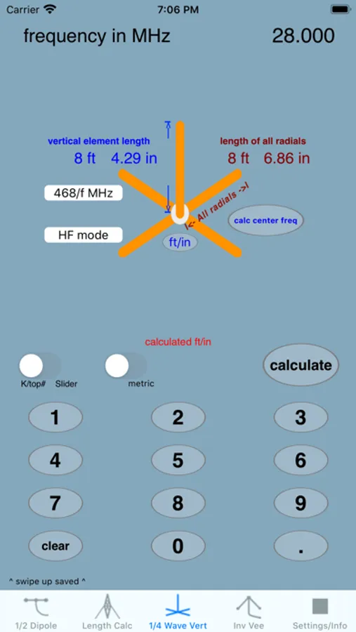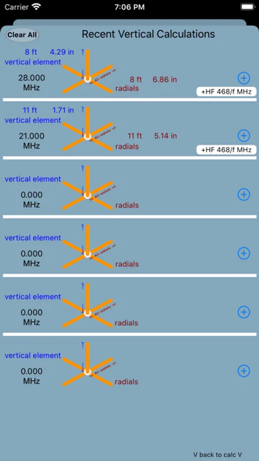 ▪ Just swipe to the left to access up to 6 saved antenna calculations for each antenna type.