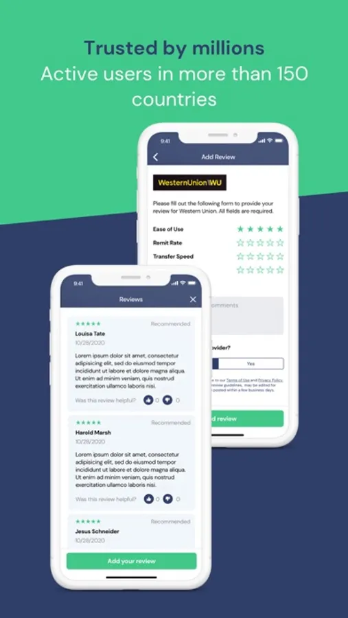 - Community based - you benefit from the experiences of other remitters using provider ratings and reviews