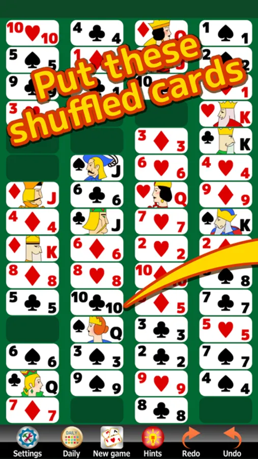 3. The cards can only be moved to a cell under a one-lower value card of the same suit.