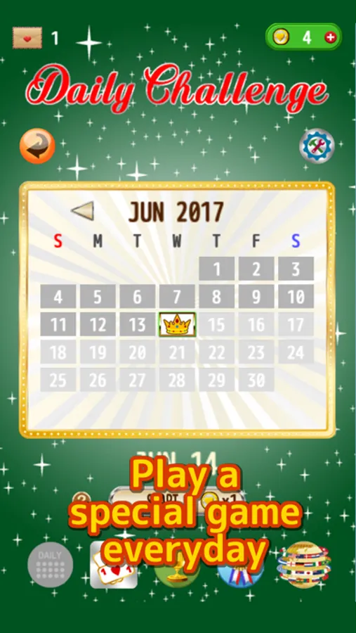 * Daily Challenge: A special new game is unlocked every day. A bronze medal is awarded if you clear 10 games of the month, a silver for clearing 20 games, and a gold for clearing the whole month games.