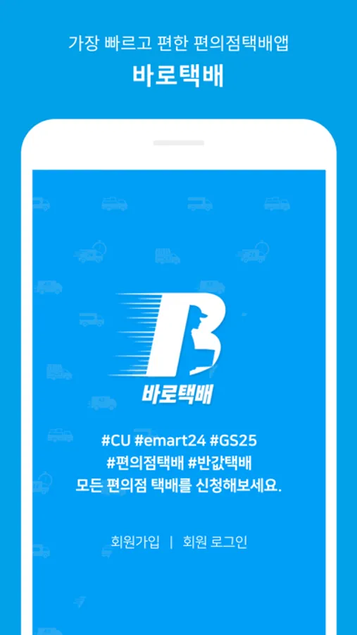 CU편의점에서, GS25편의점에서, 이마트24편의점에서 편의점택배, 반값택배 한번에 모두 이용할 수 있는 바로택배!