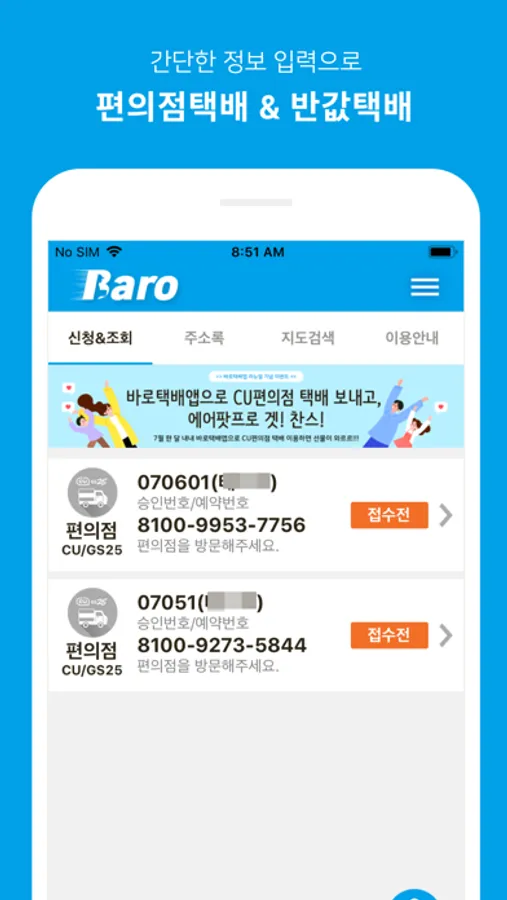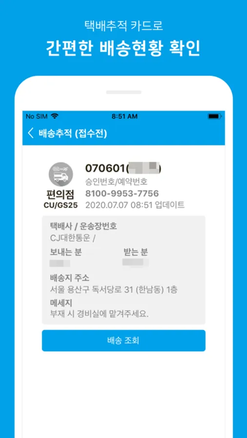 - 내가 보낸 편의점택배와 반값택배, 배송 현황과 배송정보를 앱에서 실시간으로 알려드립니다.