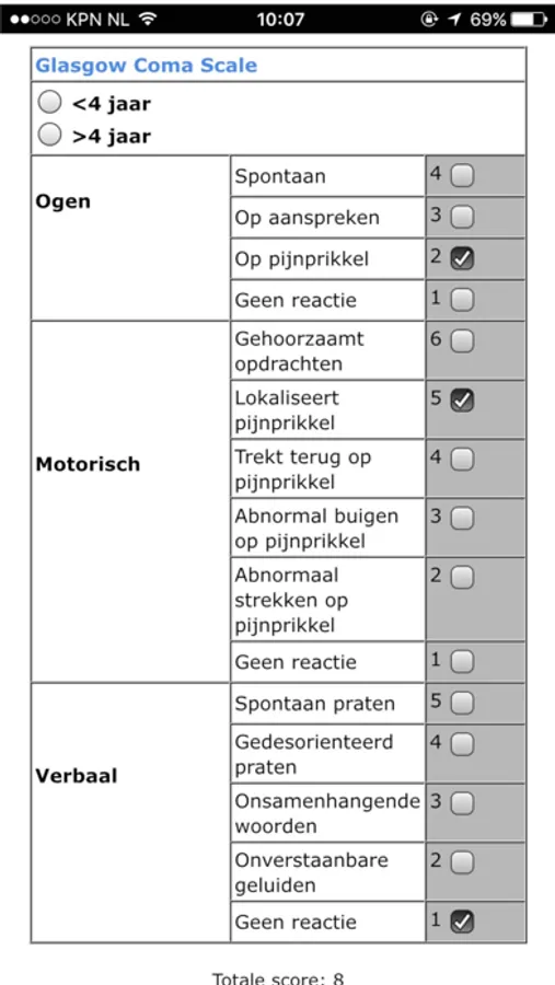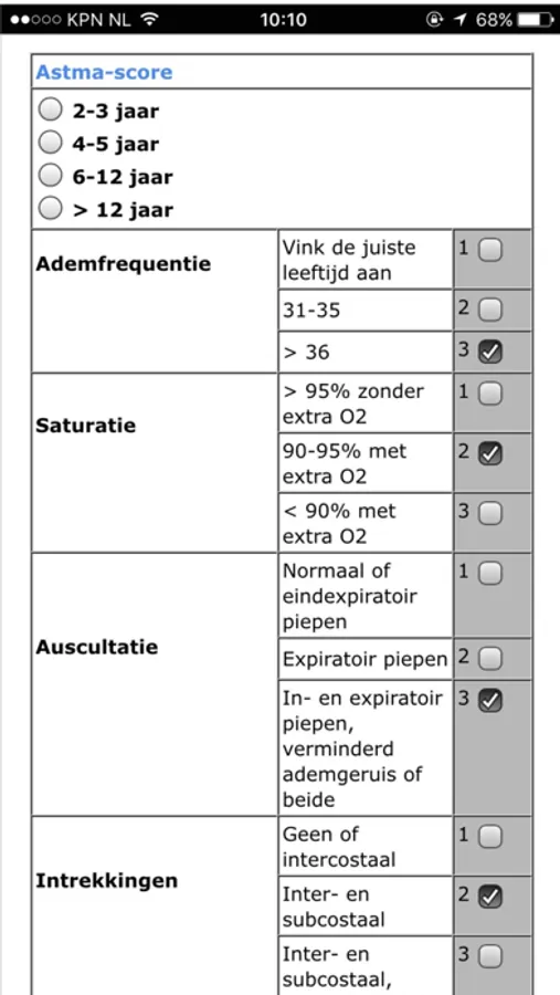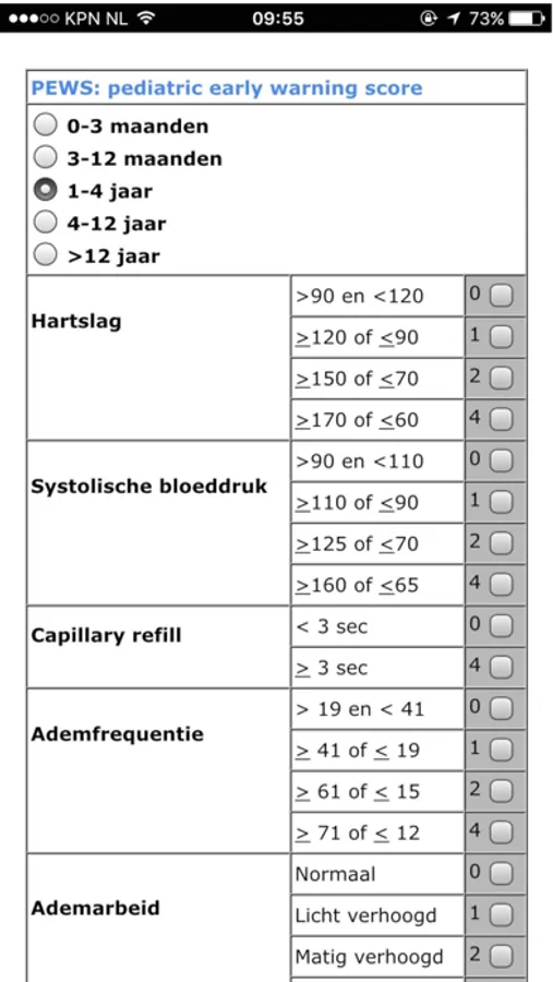 Met de score-app kunnen snel scores in de kindergeneeskunde worden berekend: de Apgar-score, Astma-score, Glasgow coma scale (GCS), de PEWS en de Thompson-score.