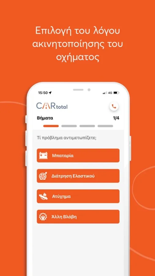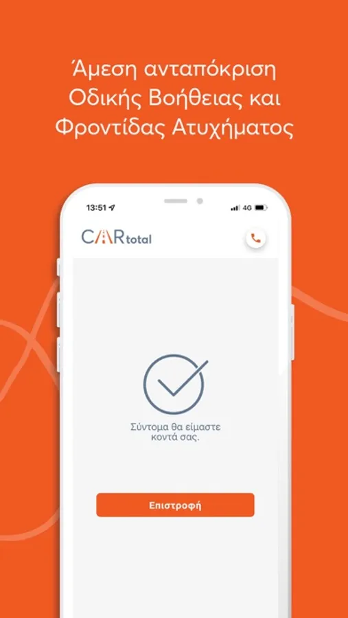 Με την εφαρμογή Car Total έχετε την δυνατότητα σε περίπτωση τροχαίου ατυχήματος ή μηχανικής βλάβης και εφόσον έχετε την κάλυψη Φροντίδας Ατυχήματος ή Οδικής Βοήθειας, να ενημερώνετε την Mondial Assistance με το πάτημα ενός κουμπιού, για την ακριβή σας τοποθεσία, προκειμένου να εντοπίσει το όχημά σας και να σας εξυπηρετήσει άμεσα.