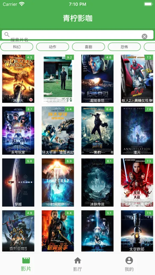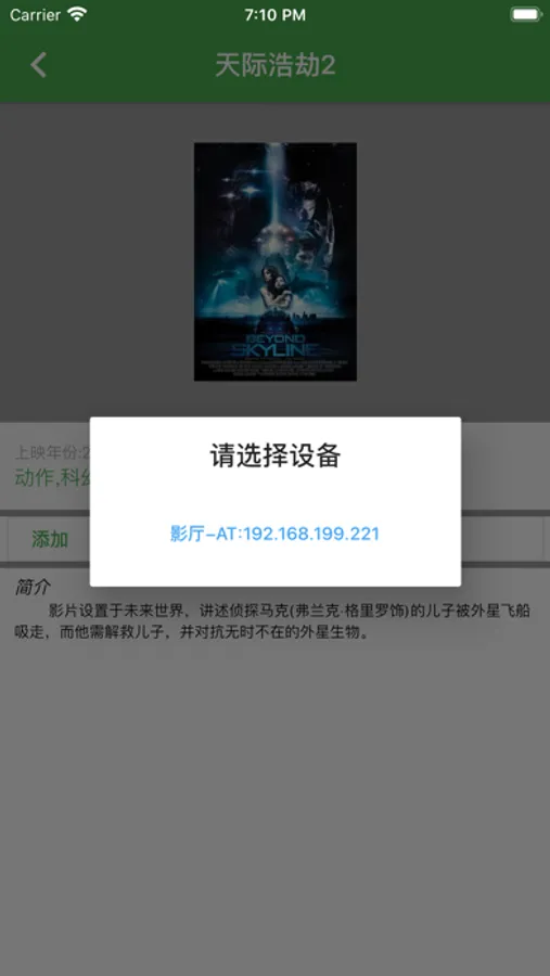 影厅: 影厅列表查看,播放进度等信息及简单遥控功能