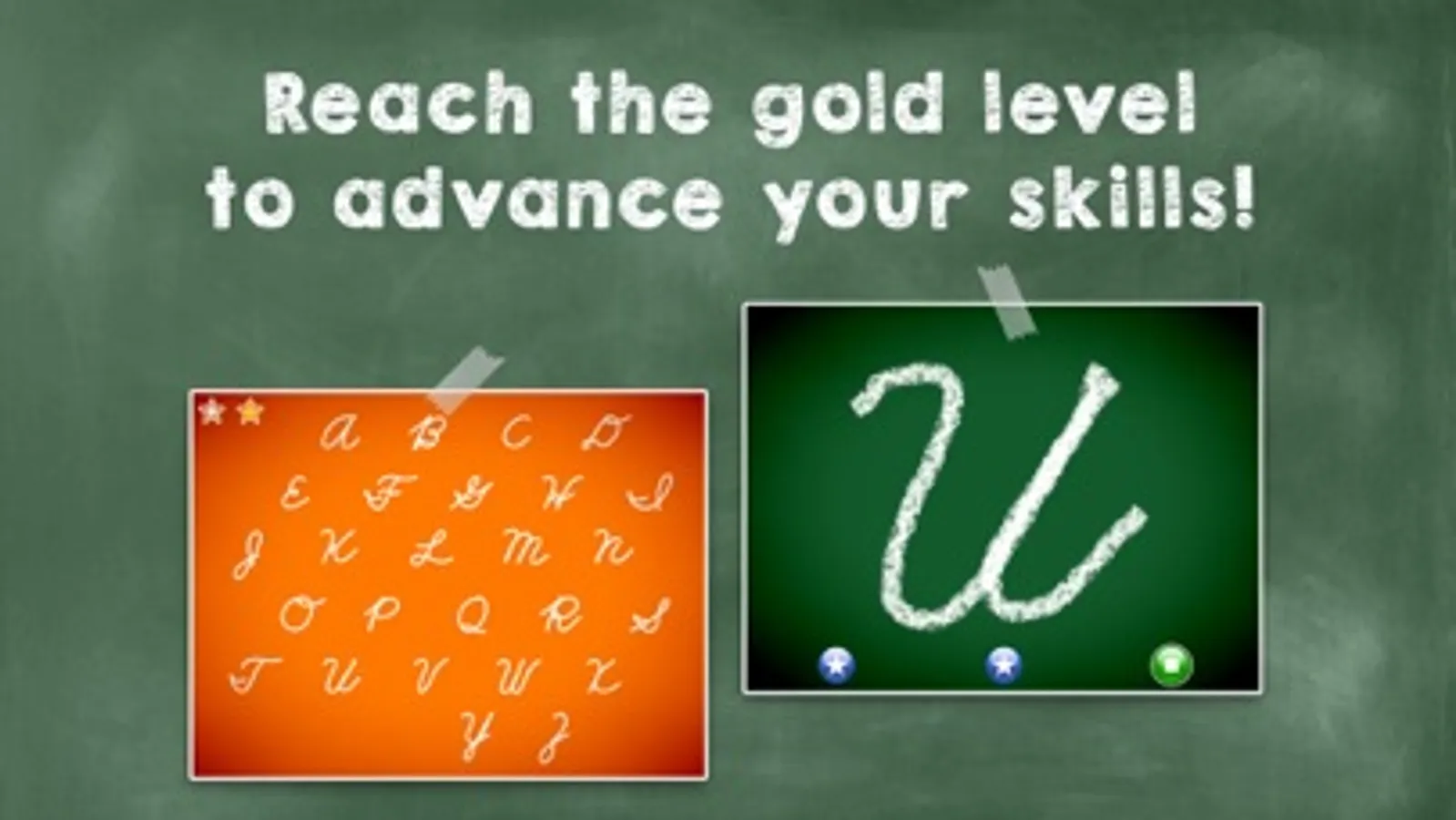 - Two levels, where Golden Level allows tracking kids’ progress by displaying their exact letter writing.