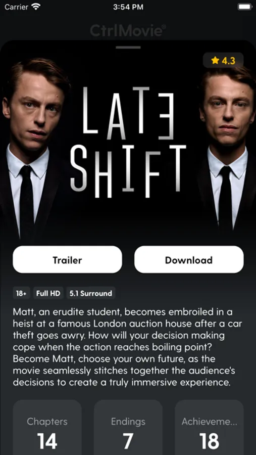 Please note: This is a companion app to your CtrlMovie account. In order to use the app you will need to use it whilst watching a CtrlMovie in a movie theatre, or a CtrlMovie game at home such as ‘Late Shift – Your Decisions Are You’.