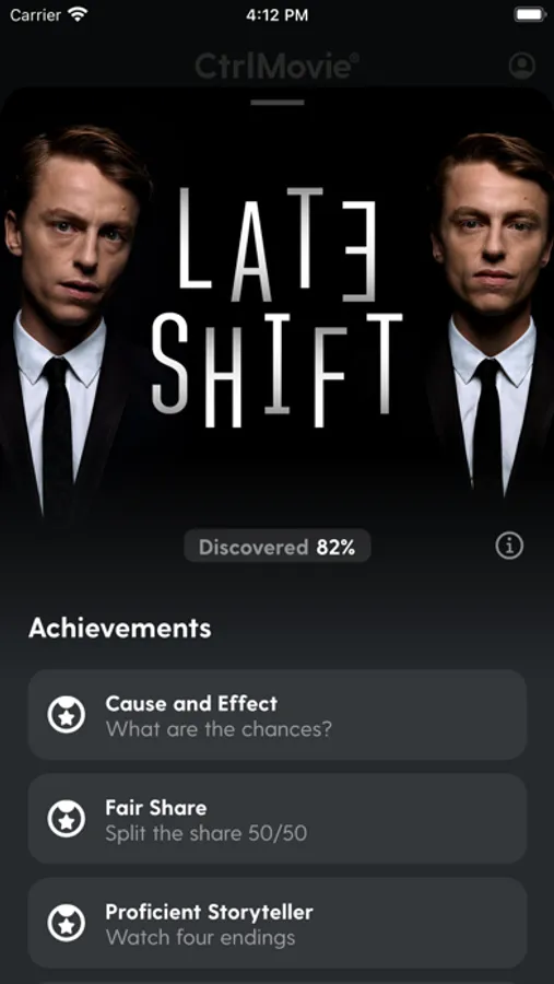 The CtrlMovie app allows you to make decisions for the protagonist at screenings of CtrlMovie interactive feature films. Be it at your local movie theatre or at home on your favourite gaming platform, you and your friends collectively control the movie's story.