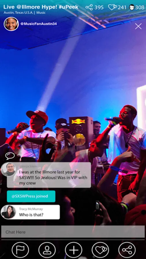 In stream Chat, Comments, Likes and Follows occurring in-app appear in your Facebook timeline and Twitter feed immediately. With uPeek, you and your viewers can invite additional friends by sharing with just a touch.