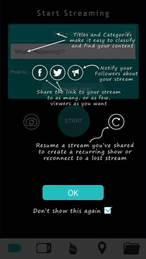 Invite your followers, friends, and fans to experience and share the world through your LIVE Video view. Instantly share your live stream with anyone, anywhere, with just a touch.