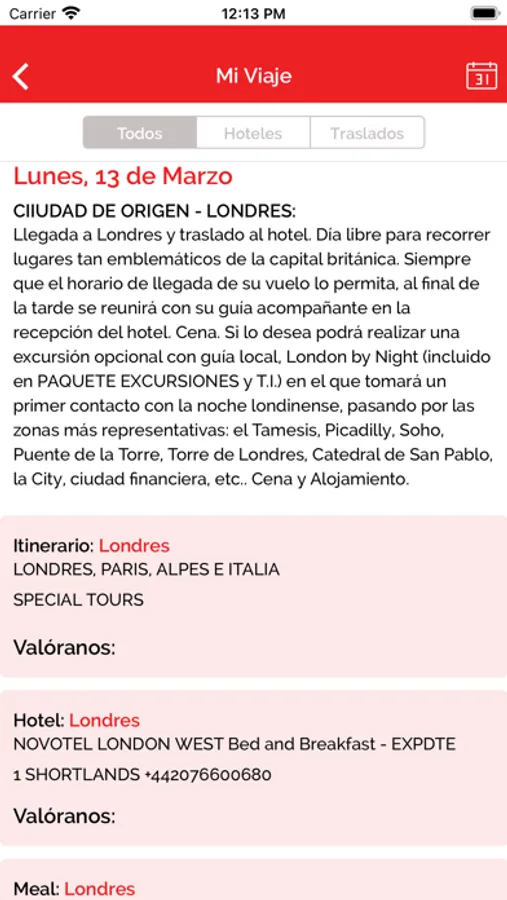 - Itinerário reservado, traslados, hotéis, visitas, serviços.