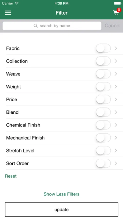 You can browse the complete catalog, filter the collection on a number of criteria to narrow down from nearly 1000 products to the specific type that you need, and order the samples either as plain fabric or as stitched leg piece.