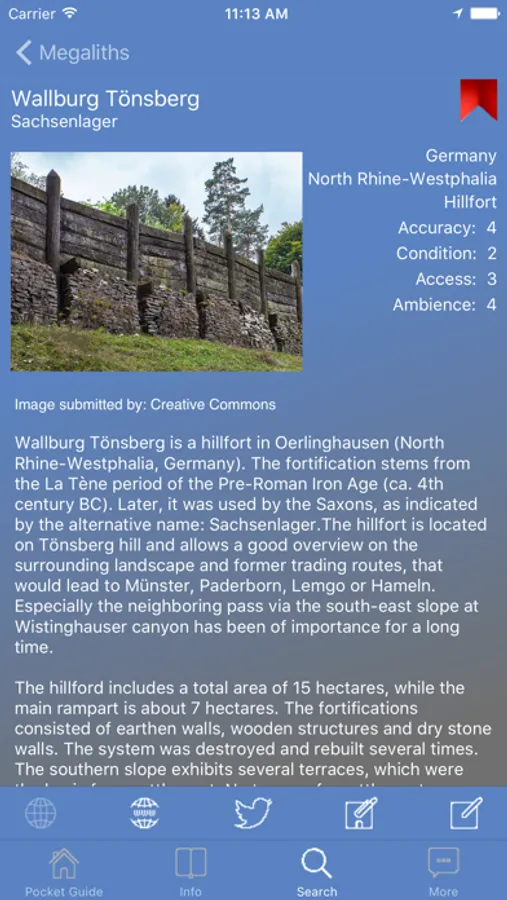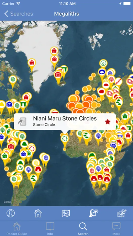 The app accesses an ever growing database of around 50,000 sites and entries worldwide. Each entry is categorised and allows filtering using a range of criteria such as over 70 different site types, map accuracy, condition, access, country of origin, location etc.